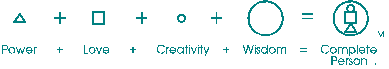 Triangle: represents Power, or more specifically, Physical Power. Square: represents Love. Small Circle: represents Creativity Large Circle: represents Wisdom Logo: represents man, or more accurately Human Being.